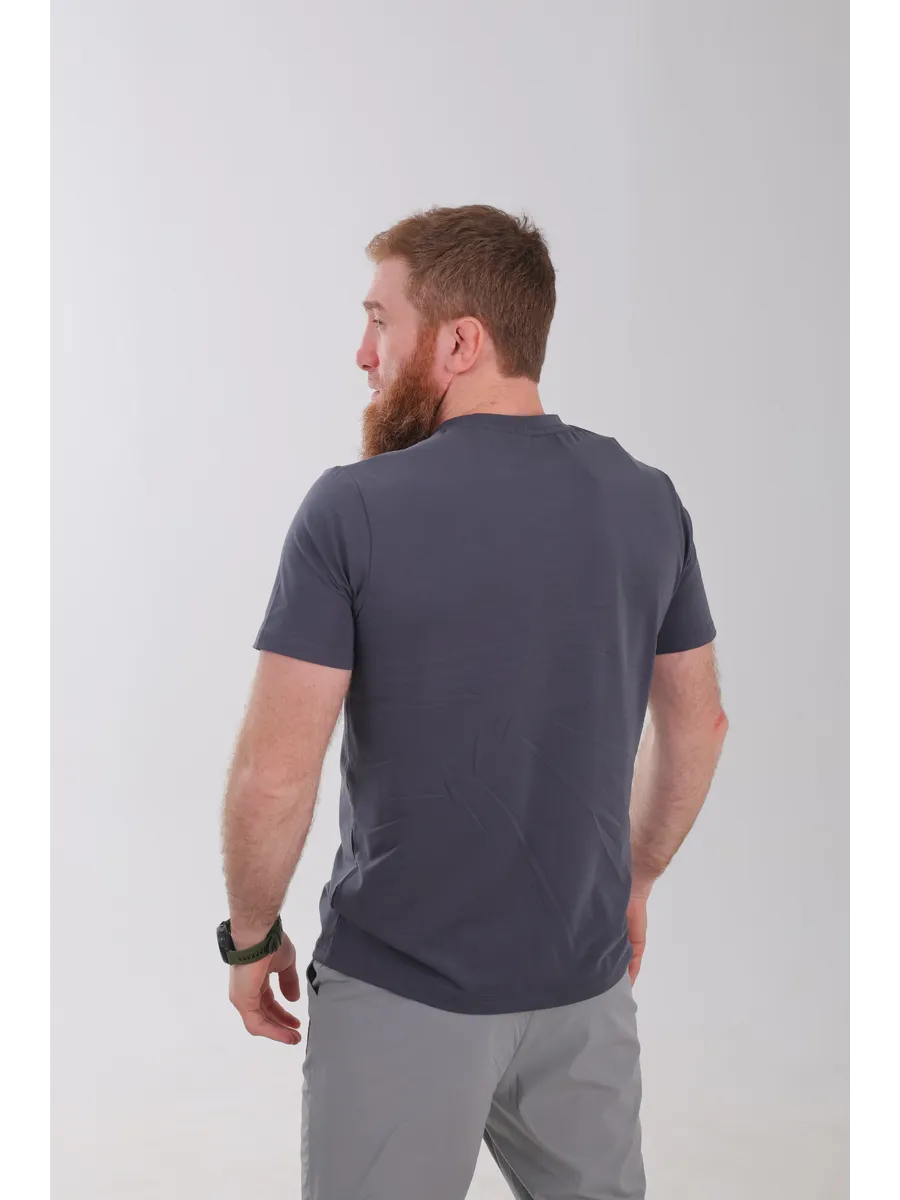 Благодаря натуральному материалу, изделие обеспечивает приятные тактильные ощущения, дышит и не сковывает движения. Подходит как для молодых парней, так и для взрослых мужчин. Ткань плотностью 180 GSM гарантирует долговечность: футболка не садится, не линяет и сохраняет форму даже после многочисленных стирок.