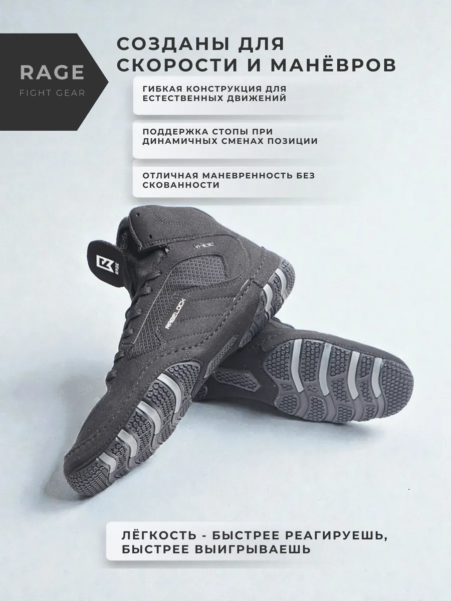 Борцовки выполнены из комбинированных материалов, что обеспечивает износостойкость и эффективный воздухообмен во время интенсивной работы. Цельная резиновая подошва гарантирует сцепление с любым типом борцовского ковра, позволяя уверенно двигаться и атаковать.