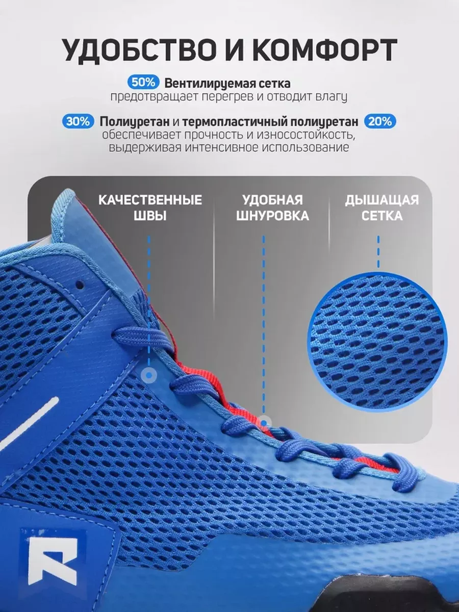 Борцовки Rage Slam выполнены из современных материалов высокого качества. Верхний слой изготовлен из комбинации прочных и дышащих материалов: 50% сетки, 30% полиуретана и 20% термопластичного полиуретана. Эти материалы обеспечивают долговечность и износостойкость обуви, а также хорошую вентиляцию для комфорта спортсменов.
