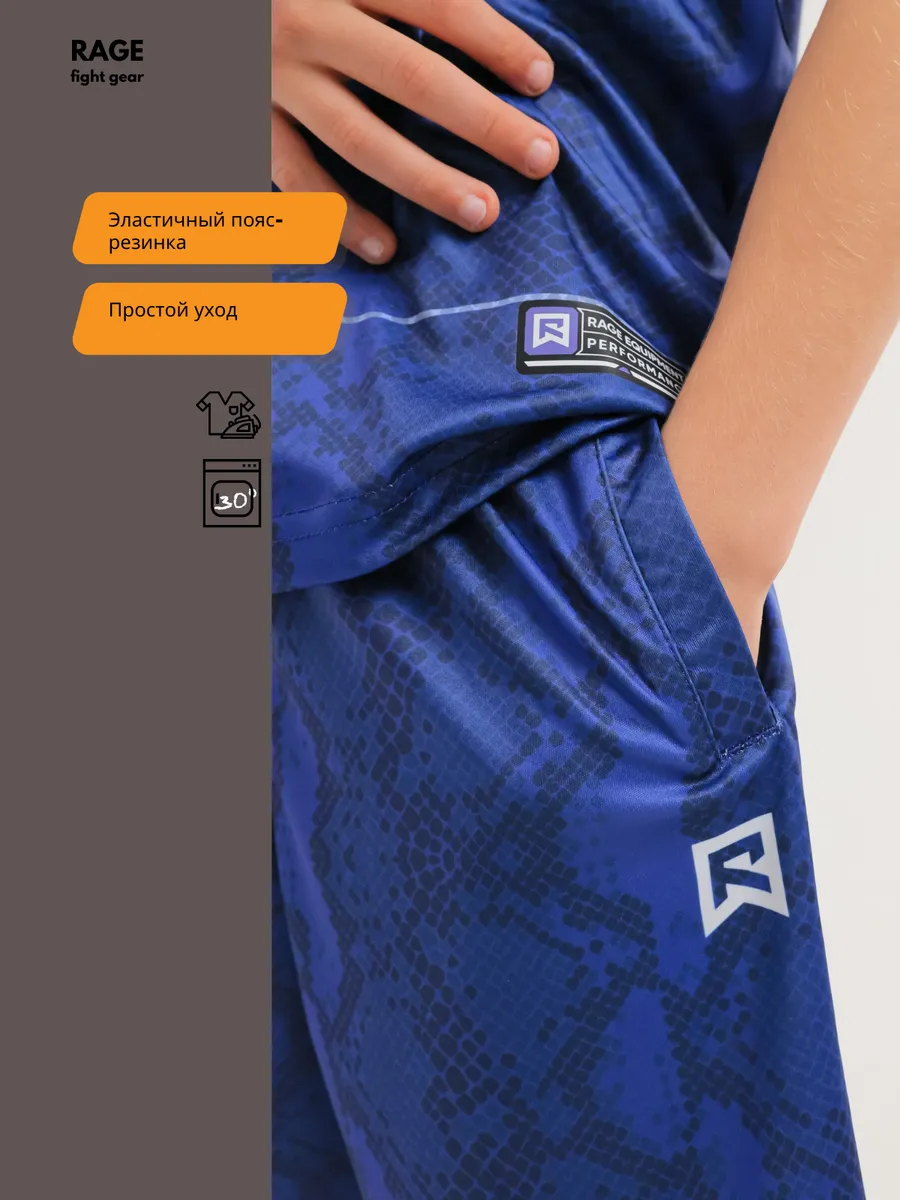 Технологичная ткань обладает превосходными быстросохнущими свойствами, абсолютно не мнется и не требует особого ухода. Антибактериальная пропитка материала эффективно нейтрализует неприятные запахи пота, обеспечивая свежесть и гигиеничность на протяжении всей тренировки. Эластичная и дышащая ткань с четыресторонней растяжимостью абсолютно не сковывает движений, позволяя с легкостью выполнять самые сложные приемы, кувырки, удары и гимнастические элементы. Яркие и сочные расцветки с контрастными принтами бренда Rage подчеркнут стиль и индивидуальность юного спортсмена. Невероятно прочный и износостойкий материал гарантирует долговечность костюма, он устойчив к истиранию и многократным стиркам, сохраняя свой первоначальный вид. Эта модель станет универсальным выбором для любого спорта, обеспечивая непревзойденный комфорт, свободу движений и уверенность в себе. Rage fight gear — это синоним качества, инноваций и победы! Комплект спортивный шорты и футболка представлены в широкой размерной линейке на рост от 120см до 170см, возраст от 5 лет.