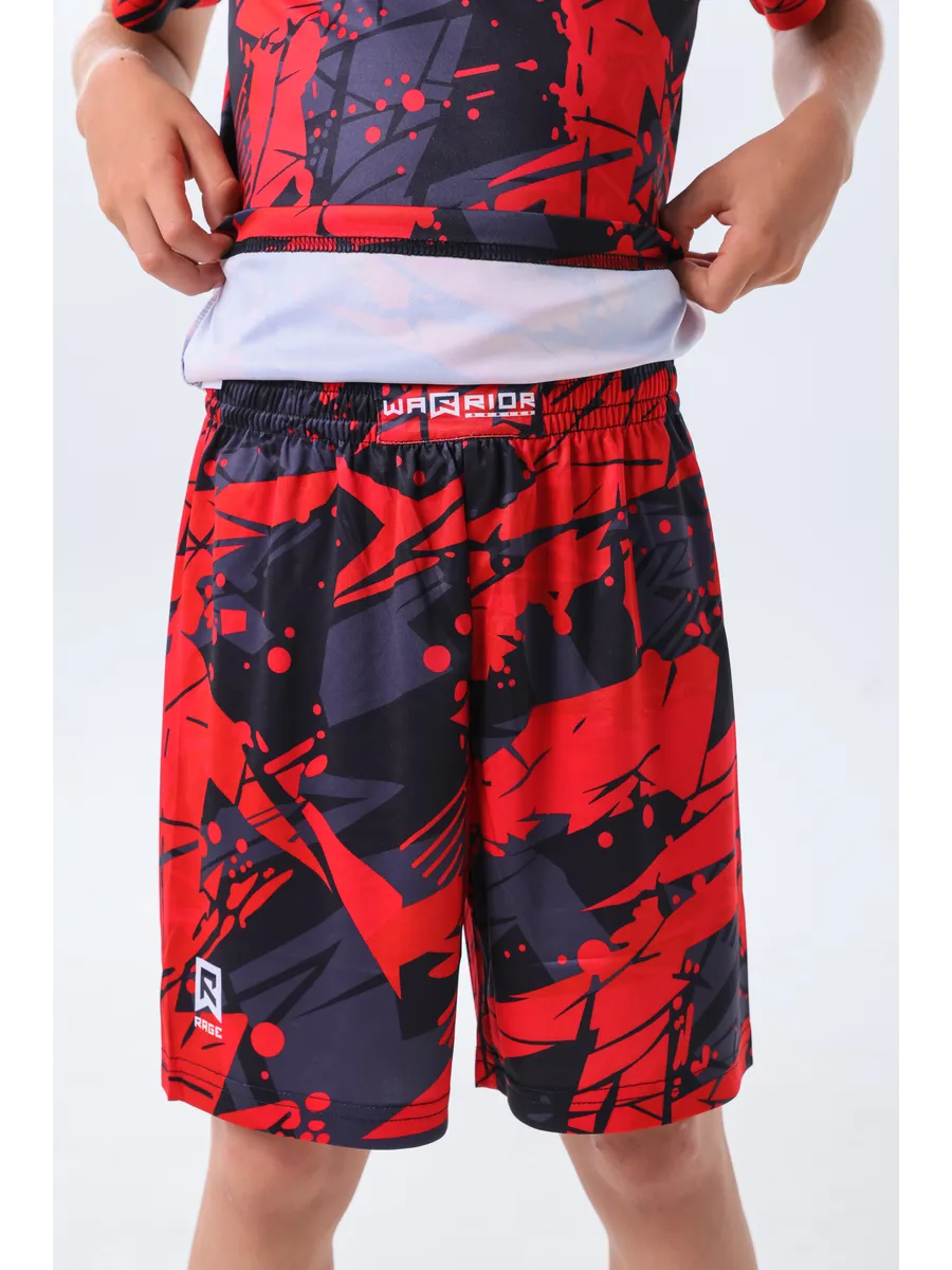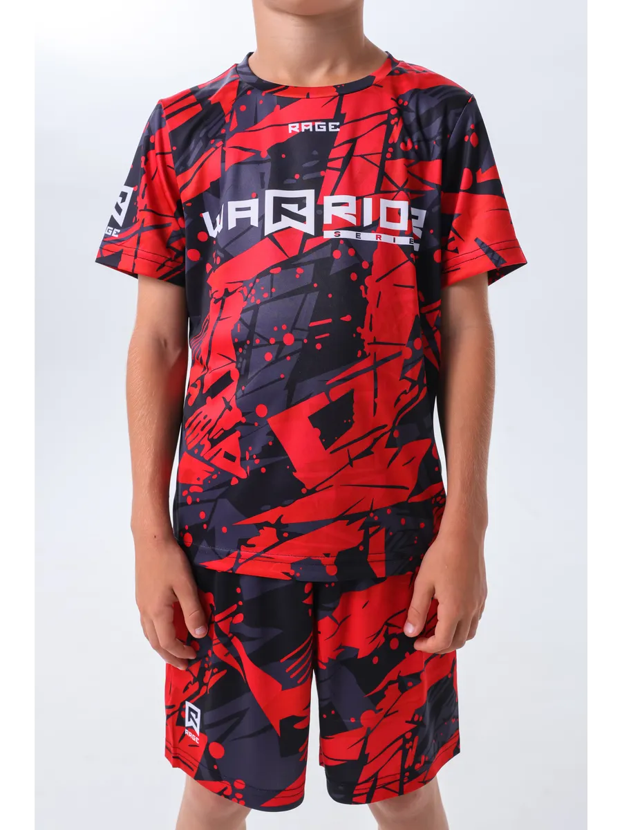Набор из быстросохнущей футболки и шорт станет вашим надежным выбором для тренировок в спортзале, занятий единоборствами, ММА, UFC, борьбой, а также для игровых видов спорта и общего фитнеса. Костюм идеально подходит для секций и ежедневных активностей. Инновационный материал на 100% состоит из высококачественного полиэстера с особым плетением нити, который обеспечивает превосходный теплообмен и моментальное отведение влаги — ваш ребенок не потеет и всегда остается сухим и комфортным даже при самых высоких нагрузках. Технологичная ткань обладает превосходными быстросохнущими свойствами, абсолютно не мнется и не требует особого ухода. Антибактериальная пропитка материала эффективно нейтрализует неприятные запахи пота, обеспечивая свежесть и гигиеничность на протяжении всей тренировки. Эластичная и дышащая ткань с четыресторонней растяжимостью абсолютно не сковывает движений, позволяя с легкостью выполнять самые сложные приемы, кувырки, удары и гимнастические элементы. Яркие и сочные расцветки с контрастными принтами бренда Rage подчеркнут стиль и индивидуальность юного спортсмена. Невероятно прочный и износостойкий материал гарантирует долговечность костюма, он устойчив к истиранию и многократным стиркам, сохраняя свой первоначальный вид. Эта модель станет универсальным выбором для любого спорта, обеспечивая непревзойденный комфорт, свободу движений и уверенность в себе. Rage Fight Gear — это синоним качества, инноваций и победы!