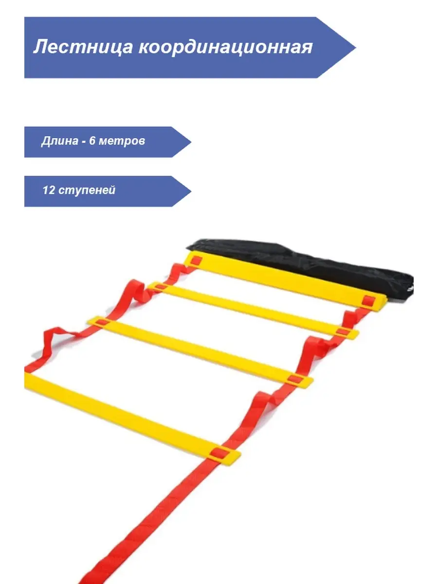 Координационная лестница EasyFit идеально подходит для тренировки координации и ловкости. Лестницы можно соединять или удлинять. Поставляется с сумкой для удобной транспортировки и хранения лестницы.Длина 6 метров.Особенности продукта:- Длина: 6 м- Материал: пластик- Комбинируемый: Да.Спортивная дорожка помогает в развитии скорости, координации, равновесия и тайминга. Тренировки со спортивной лестницей считаются лучшим способом развития быстроты ног. Лестница незаменимый атрибут в подготовке спортсменов - игровиков и представителей единоборств. Особенностью координационной лестницы можно считать и то, что помимо мускулатуры, она тренирует и мозг. Что дает возможность совершать более отточенные движения и лучше владеть своим телом. Гибкие пластичные ламели лестницы в каждом элементе соединяются стропами без фиксации.