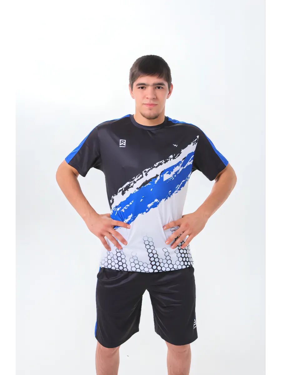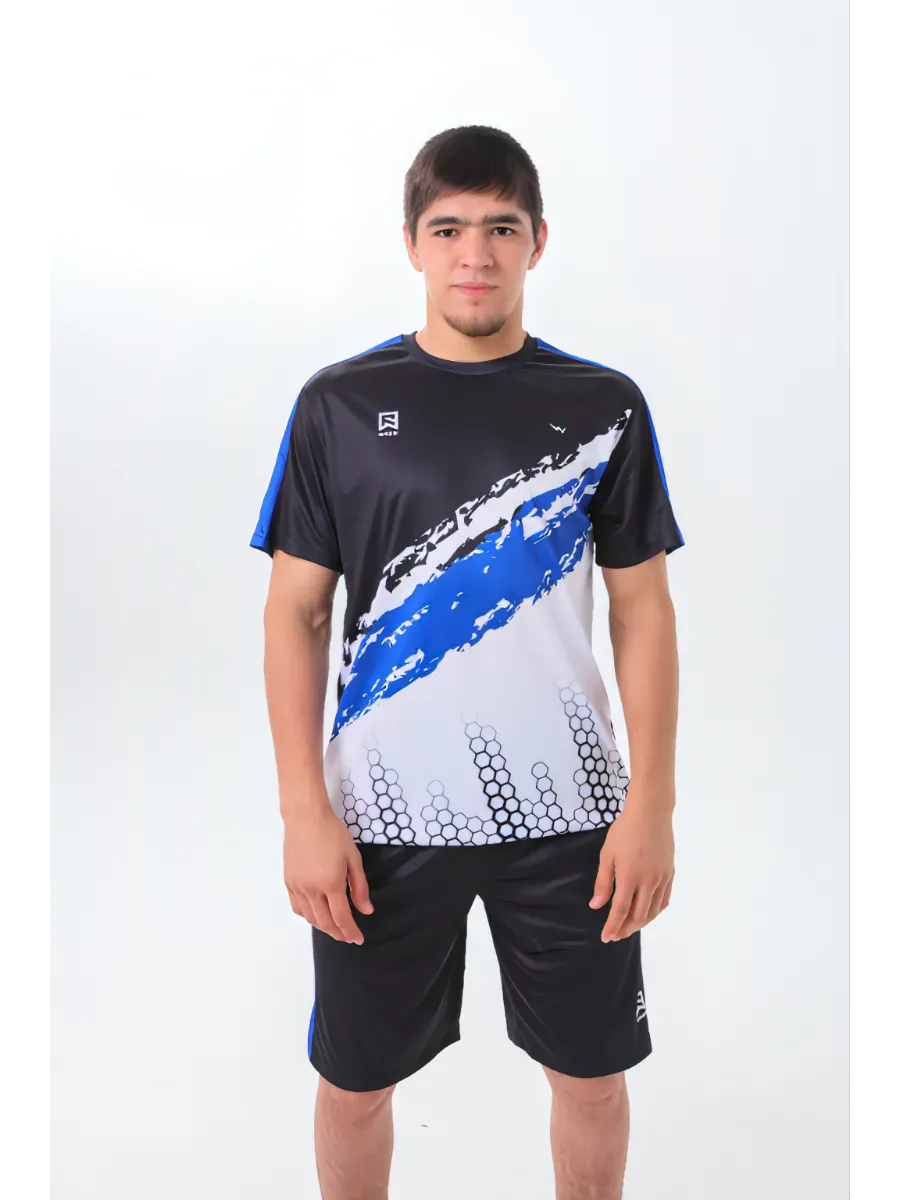 Мужской спортивный костюм с шортами и футболкой отличный вариант для активного отдыха или профессиональных тренировок и выступлений с тренажерных залах.