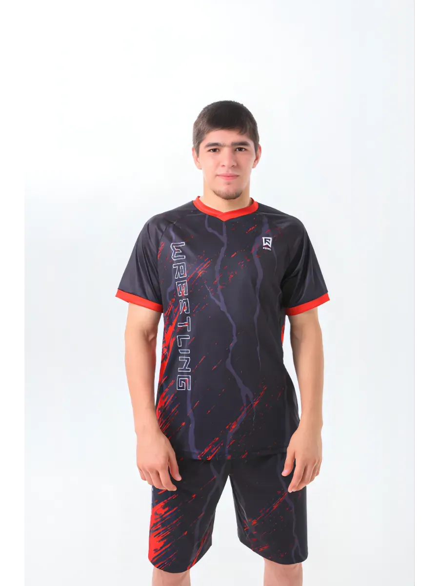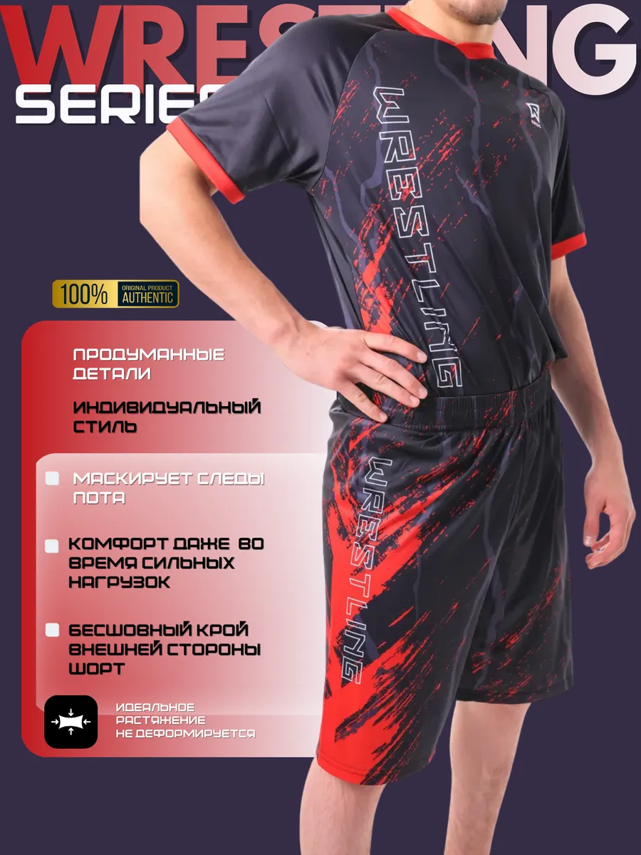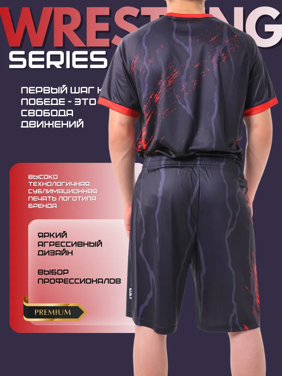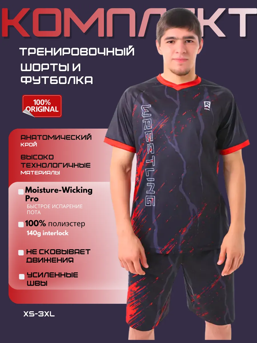 Мужской спортивный костюм с шортами и футболкой отличный вариант для активного отдыха или профессиональных тренировок и выступлений с тренажерных залах.