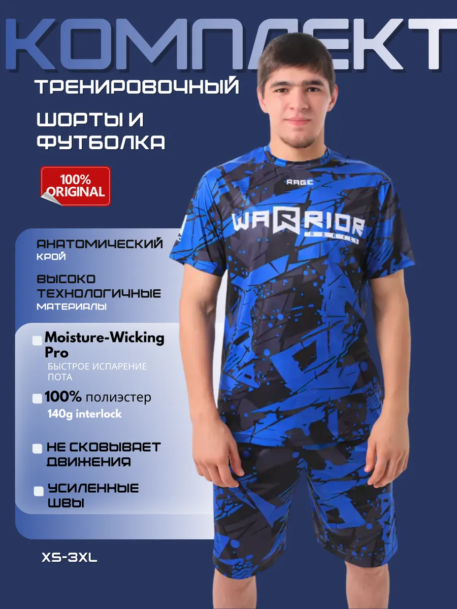 Мужской спортивный костюм с шортами и футболкой отличный вариант для активного отдыха или профессиональных тренировок и выступлений с тренажерных залах. Бренд Rage позаботился о том, чтобы вы чувствовали себя уверенно и комфортно во время носки данной модели. Учтены все высококлассные технологии в пошиве спорт одежды. Двойка выполнена из полиэстера премиум качества. Использован материал - интерлок. Эта ткань двойного переплетения. Данный вид обработки делает изделие двусторонним и обе стороны ткани остаются гладкими и приятными на ощупь. Его отличительной особенностью является то, что одежда хорошо держит форму и долго не вытягивается. Важными свойствами этих вещей будут гигроскопичность, воздухопроницаемость, теплоизоляция и гипоаллергенность. Все эти качества очень важны для парней и мужчин, которые занимаются различными видами спортивных дисциплин. Им нужно всегда быть в комфорте, поэтому форма должна быть практичной и многофункциональной. И кстати, костюмы плюс ко всем вышеперечисленным плюсам, еще и очень стильные. Так что смело делайте выбор в пользу нашего крутого бренда и будьте в тренде.
