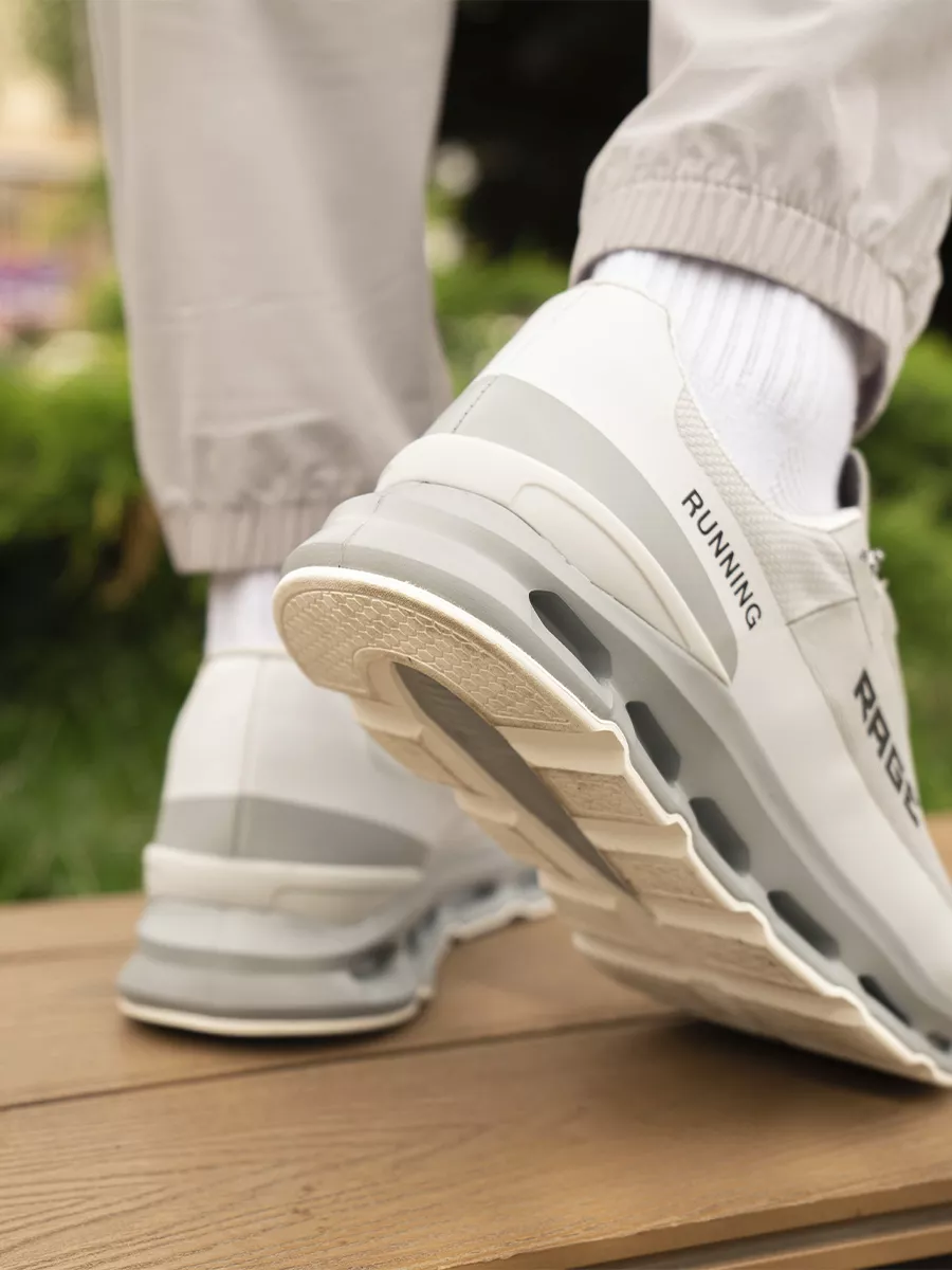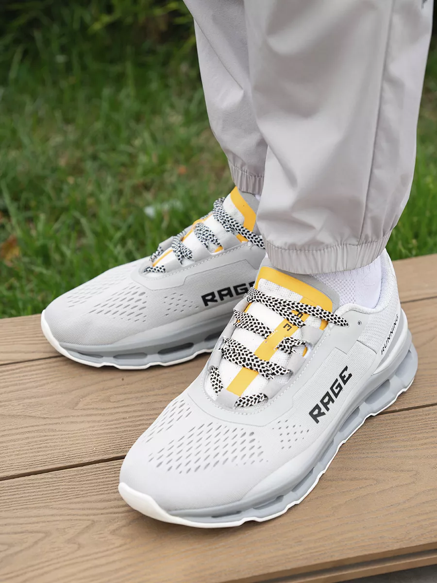 Кроссовки для тренировок Rage Running - это отличный выбор как для активного отдыха, так и для ежедневных тренировок. Мужские кроссовки выполнены из высококачественных материалов. Верх из дышащей сетчатой ткани – прочный и устойчивый к износу. Одно из важнейших преимуществ наших беговых кроссовок - квадратная сетчатая подкладка, которая дышит и поглощает запахи. Это один из видов современных материалов, используемых в производстве спортивной обуви. Этот материал обеспечивает хорошую вентиляцию, отведение влаги и комфорт при носке кроссовок. Верх кроссовок состоит из дышащей сетки, которая обеспечит комфорт и эффект вентиляции во время тренировок. Высокая эластичная подошва, изготовленная из материала EVA, обеспечивает амортизацию, а резиновая подошва Michelin — отличное сцепление и противоскользящие свойства. Стелька изготовлена из органической ткани толщиной 1 см, очень мягкая и обладает двойной амортизацией. Кроссовки объединяют в себе комфорт и практичность, благодаря чему отлично помогают справляться с физической нагрузкой.