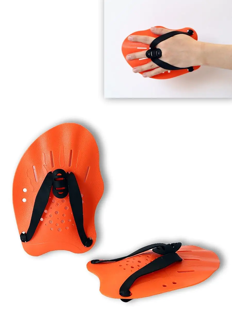 Это аксессуар, который помогает улучшить и обучиться правильной технике гребка, развить силу мышц. За счет более высокого сопротивления воды пловец учится отрабатывать правильную технику и вкладывать руку в воду, т.к. из-за большой площади ладони проще всего положить руку под верным углом, а затем провести ее вдоль корпуса. Очень удобны из-за повторения формы ладони, имеют необходимые отверстия для улучшения ощущения воды. Изготовлены из плотного пластика, оснащены регулируемыми силиконовыми резинками на палец и запястье, благодаря которым можно регулировать захват.