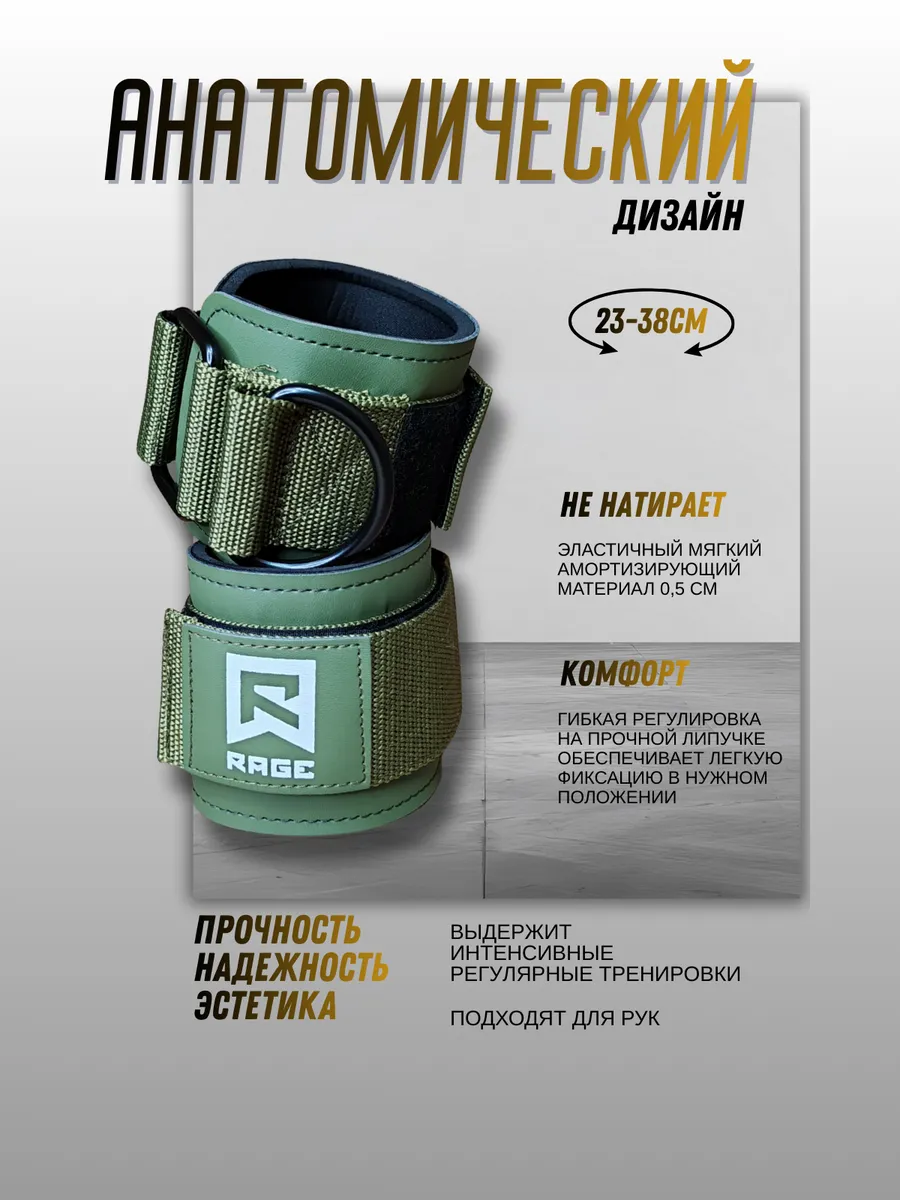 Тренировочные манжеты для ног RAGE fight gear необходимы во время упражнений на силовых тренажерах или в домашних условиях, а анатомические манипуляции с их использованием незаменимы для укрепления мышц. Манжеты на ноги для кроссовера нашего бренда это выбор для профессионалов и новичков, для тех кто выбирает качественный спортивный инвентарь для дома, для тренажерного зала, для фитнеса. Широкая цветовая линейка подойдет как для мужчин, так и для женщин. Манжеты для ног для женщин представлдены в красивом розовом оттенке, остальные цвета универсальны: черный с ярким энергичным желтым логотипом, хаки выполнен в классическом сочетании цветов с белым логотипом, и серый с ярким сине-фиолетовым логотипом.