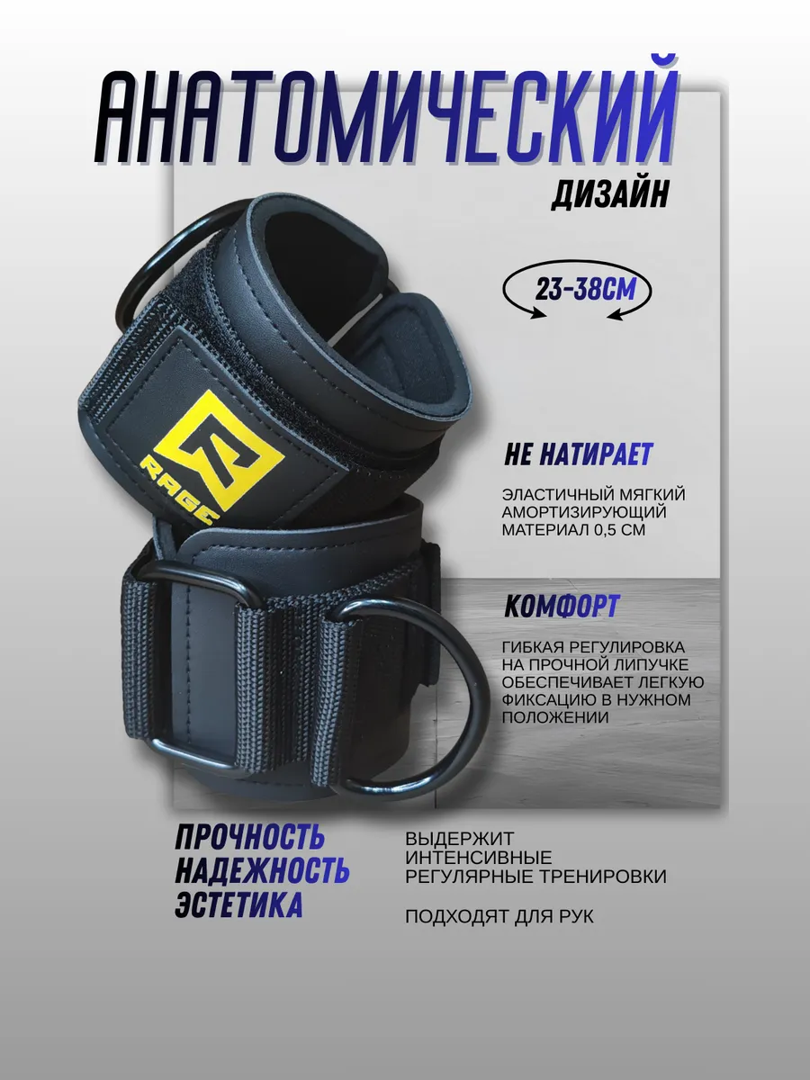Тренировочные манжеты для ног RAGE fight gear необходимы во время упражнений на силовых тренажерах или в домашних условиях, а анатомические манипуляции с их использованием незаменимы для укрепления мышц. Манжеты на ноги для кроссовера нашего бренда это выбор для профессионалов и новичков, для тех кто выбирает качественный спортивный инвентарь для дома, для тренажерного зала, для фитнеса. Широкая цветовая линейка подойдет как для мужчин, так и для женщин. Манжеты для ног для женщин представлдены в красивом розовом оттенке, остальные цвета универсальны: черный с ярким энергичным желтым логотипом, хаки выполнен в классическом сочетании цветов с белым логотипом, и серый с ярким сине-фиолетовым логотипом.