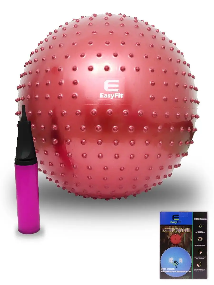 Мяч гимнастический массажный EasyFit полезно использовать для массажа мышц с повышенным тонусом. С помощью гимнастического массажного мяча можно тренировать все мышцы тела, правильно выстроив тренировочный процесс и используя его как основной или второстепенный снаряд для упражнений. Его используют как женщины, так и мужчины в функциональном тренинге, бодибилдинге, групповых программах, стретчинге (растяжке). Оснащен системой "Анти-Взрыв", которая не даст ему взорваться при проколе, вместо этого он медленно сдуется.