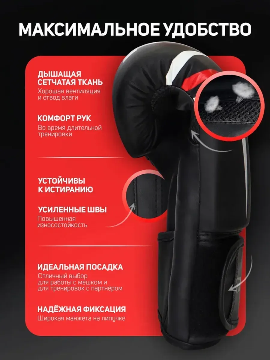 Боксерские перчатки с различными размерами (8oz, 10oz, 12oz, 14oz, 16oz), сделанные из высококачественного заменителя кожи - отличный выбор как для работы с мешком, так и для тренировок с партнером. Перчатки боксерские имеют идеальную посадку и удобство для рук любого размера, долго служат и надежно защищают во время занятий. Перчатки для бокса также оснащены перфорацией для вентиляции, вкладышем из пенополиуретана для дополнительной амортизации, фиксацией большого пальца для стабильности запястья и широкой манжетой для надежной фиксации на руке. Перчатки боксерские подходят для спаррингов и для отработки ударов на груше и снарядах. Подойдут для таких видов единоборств, как ММА, тайский бокс (муай тай), кикбоксинг и классический бокс.