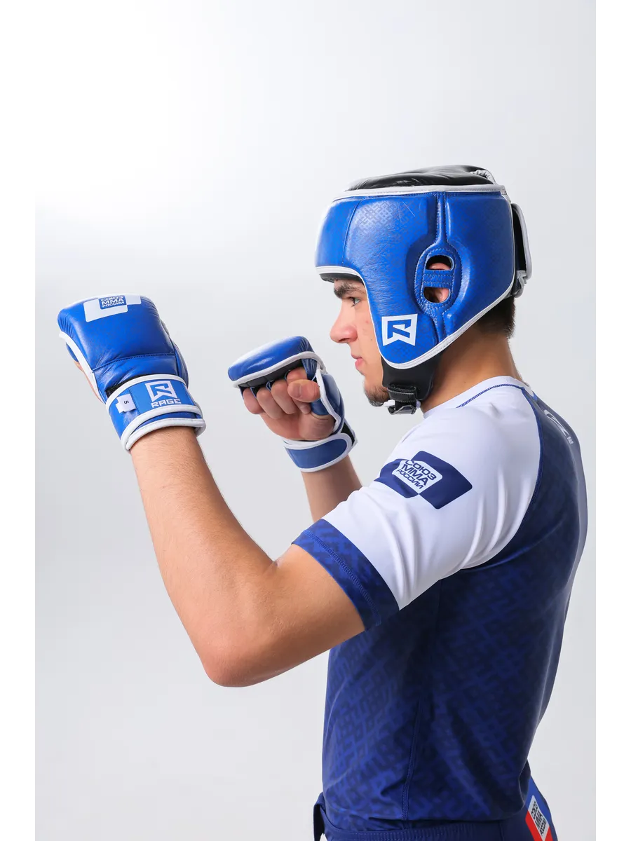 Профессиональный соревновательный шлем для тренировок от бренда Rage Fight Gear, аккредитованный Союзом ММА России, обеспечивает максимальную защиту головы во время спаррингов и соревнований. Многослойный наполнитель из высокоплотного пеноматериала эффективно поглощает удары, снижая риск травм. Наружный слой из натуральной кожи повышенной прочности гарантирует устойчивость к истиранию и механическим повреждениям, обеспечивая долговечность даже при интенсивных нагрузках. Эргономичная конструкция идеально повторяет контуры головы, обеспечивая комфортную посадку без избыточного давления, а система регулируемых застежек обеспечивает надежную фиксацию. Шлем подходит для различных единоборств: MMA, бокс, муай-тай, кикбоксинг. Стильный внешний вид с фирменной символикой бренда Rage. Аккредитован союзом ММА России.