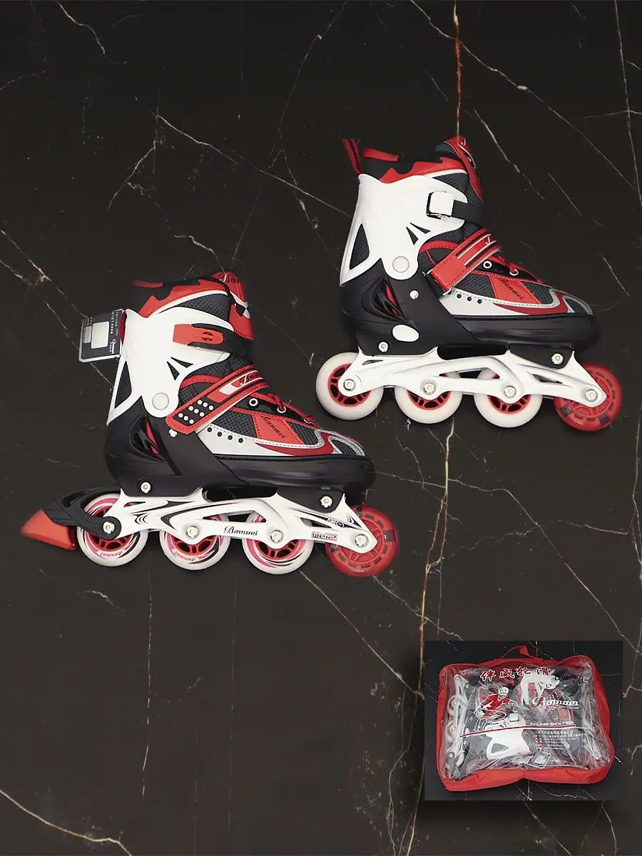 Верх сапожка изготовлен из современного синтетического материала, стойкого к внешним воздействиям. Внутри сапожка отделка сделана из мягкого синтетического материала.Застежка типа AUTO LOCK удобно регулируется на нужный размер. Система изменения размера корпуса (кнопка) проста в использовании, позволяет быстро и комфортно подогнать сапожок под ногу. Есть шнуровка для более прочной фиксации ноги. Ролики комплектуются тормозом, устанавливающимся как правило- на правый ботинок.