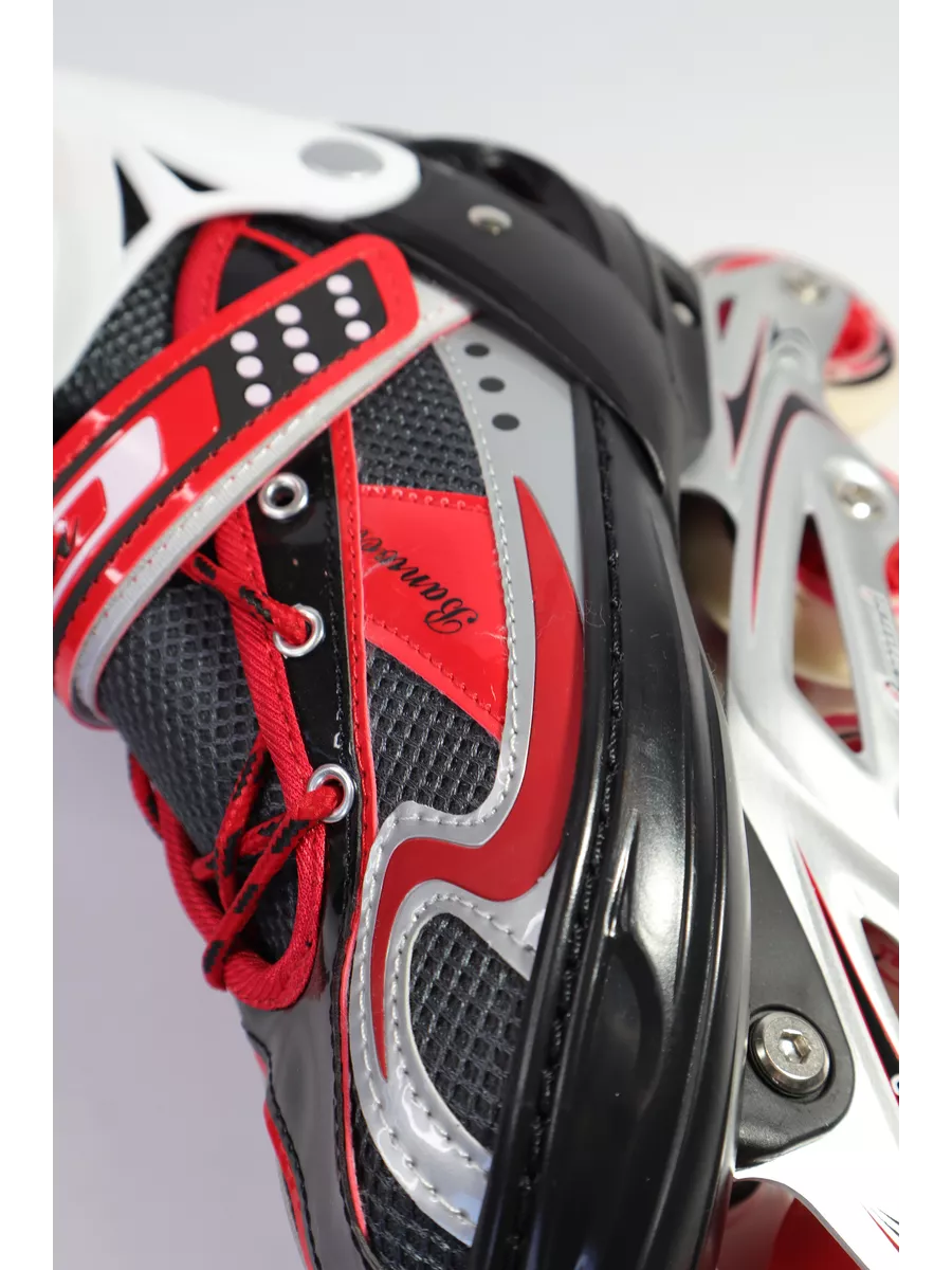 Верх сапожка изготовлен из современного синтетического материала, стойкого к внешним воздействиям. Внутри сапожка отделка сделана из мягкого синтетического материала.Застежка типа AUTO LOCK удобно регулируется на нужный размер. Система изменения размера корпуса (кнопка) проста в использовании, позволяет быстро и комфортно подогнать сапожок под ногу. Есть шнуровка для более прочной фиксации ноги. Ролики комплектуются тормозом, устанавливающимся как правило- на правый ботинок.