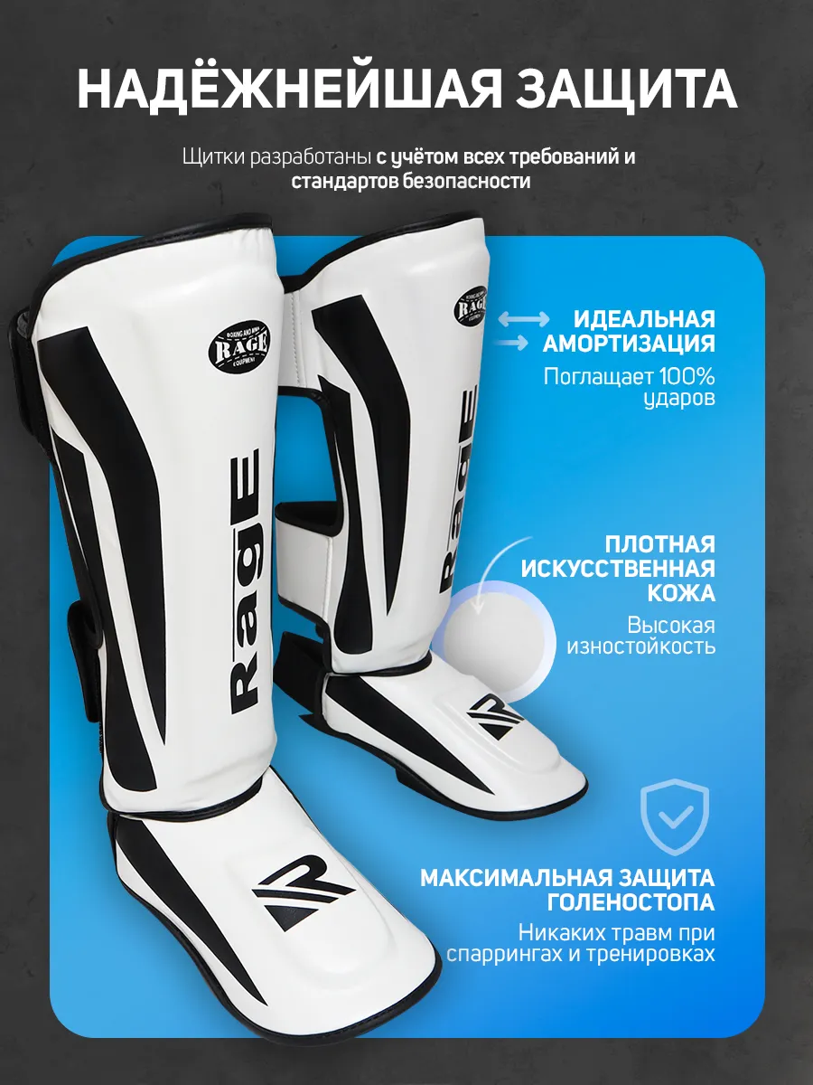 Щитки Rage - это отличный выбор для спортсменов любого уровня, подходит как для новичков, так и для профессиональных спортсменов. Крепления с липучками и эластичными лентами обеспечивают надежную подгонку. Внутренним наполнителем у щитков является пена, которая поглощает силу удара и позволяет избежать травмы во время спарринга, а внешний материал - это плотная искусственная кожа с высокой стойкостью к истиранию, обеспечивающая надежную защиту голени и стопы. отлично подойдет для занятий ММА, тайский бокс, единобороства. Щитки Размер M (обхват узкой части голени 20.5-23см, см; обхват широкой части голени 32-38см); L (обхват узкой части голени 23.5-26см; обхват широкой части голени 39-44см).