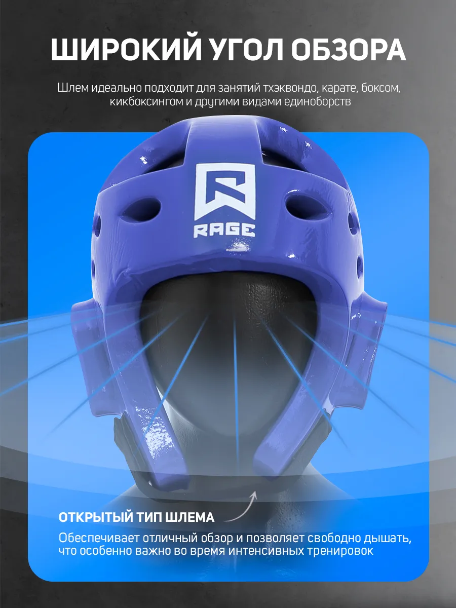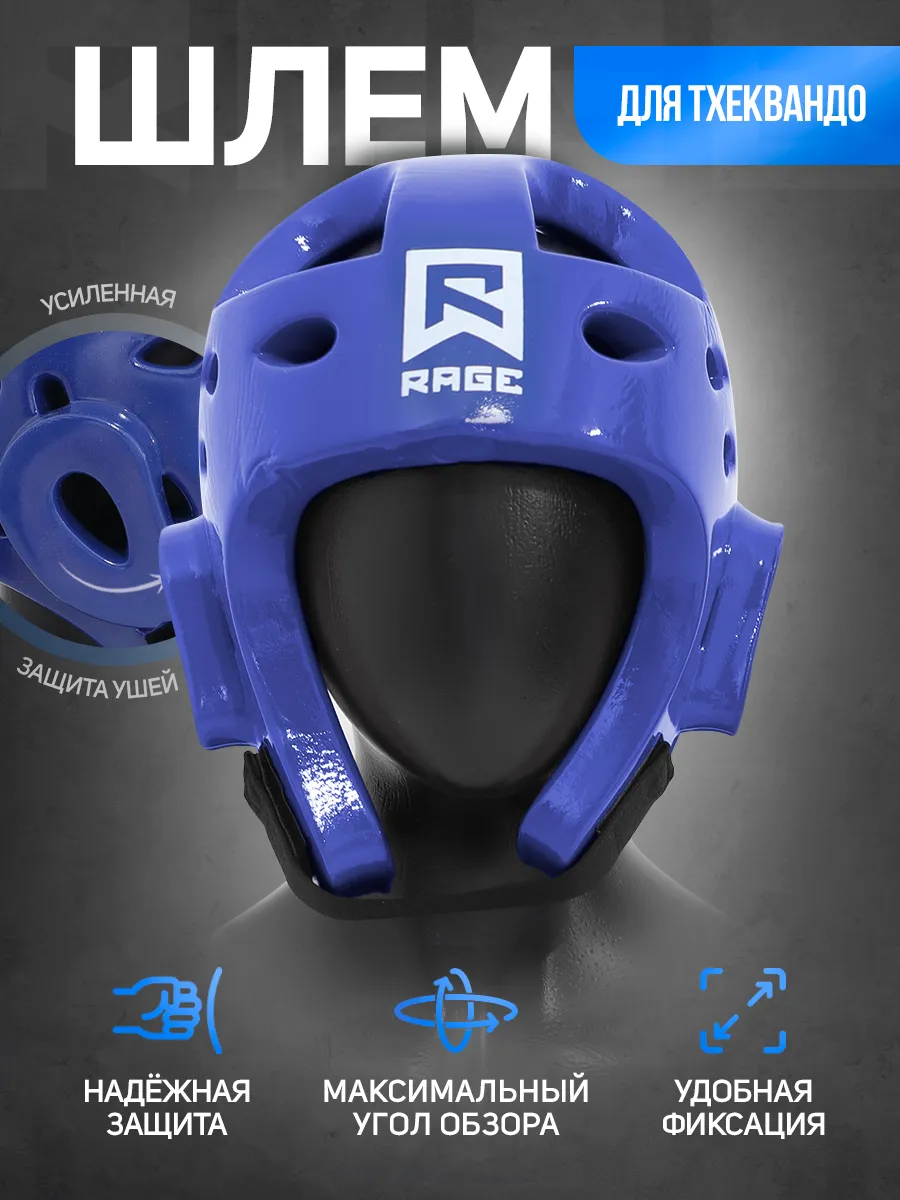 Легкий и удобный шлем для тхэквондо RAGE подходит и для других контактных видов спорта.Защита для тхэквондо,спортивная экипировка обеспечивает защиту головы и ушей. Шлем тхеквондо используется в любительских соревнованиях. Лобная часть шлема тхэквондо усилена. Теменная и височная зоны с вентиляционными отверстиями. Крепление под подбородком эластичным ремнем с липучкой. Материал - полиуретан. Спортивный головной убор может быть использован для других видов единоборств таких как каратэ или кудо, но важно убедиться что он соответствует правилам и требованиям конкретного категория спорта. Уважаемый покупатель при получении товара возможно могут быть шлема слегка помятые, но хотим предупредить это не брак, просто при низкой температуре материал может замерзнуть и форму потерять при перевозке. Шлем придет в форму в домашней температуре и возьмет форму головы при надевании.