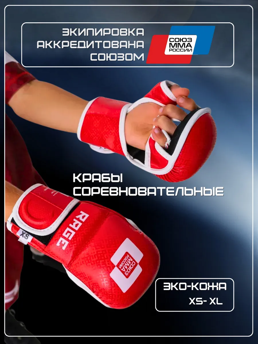 Профессиональные спарринговые перчатки, крабы от бренда Rage Fight Gear, аккредитованные Союзом ММА России, созданы для тренировок и соревнований в различных боевых дисциплинах: MMA, UFC, рукопашный бой и другие единоборства. Модель обеспечивает максимальную защиту рук и пальцев благодаря продуманной анатомической форме с усилением в ключевых ударных зонах. Натуральная кожа высшего качества гарантирует исключительную прочность, износостойкость и долговечность даже при интенсивных нагрузках. Облегченная конструкция сохраняет естественную подвижность пальцев, что критично для выполнения сложных технических элементов и захватов. Эргономичный дизайн с надежной системой фиксации обеспечивает идеальное прилегание к руке без дискомфорта во время длительных тренировок. Доступны различные размеры для точной посадки. Стильный внешний вид с фирменной символикой бренда и коллаборации дополняет функциональные преимущества модели. Эти перчатки - профессиональный выбор для спортсменов любого уровня, ценящих безопасность, качество и инновационные решения в экипировке.